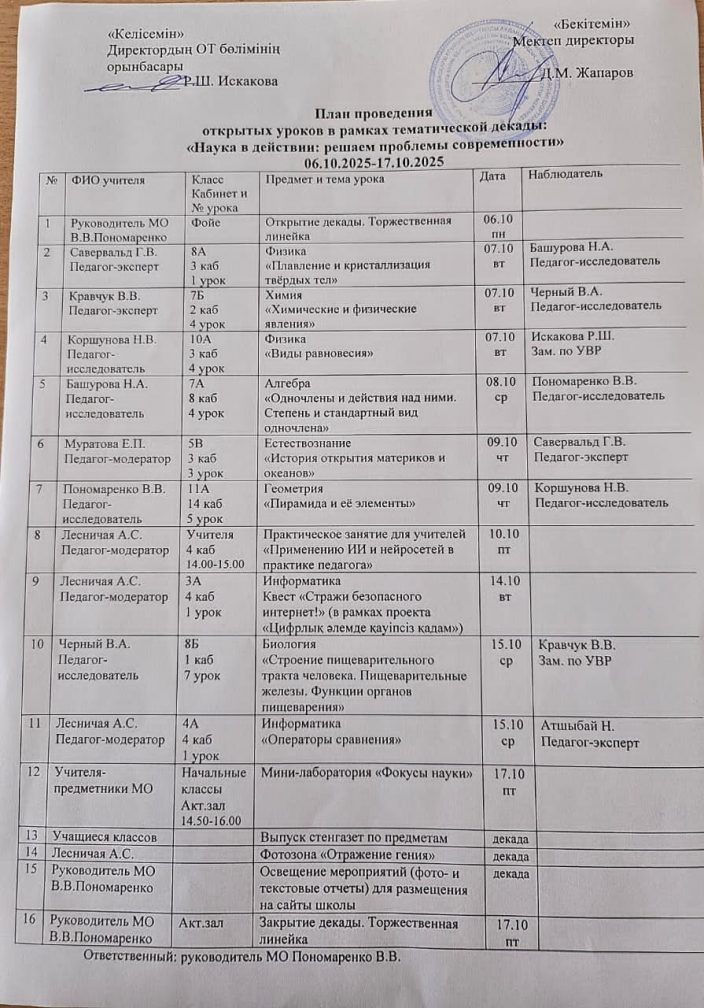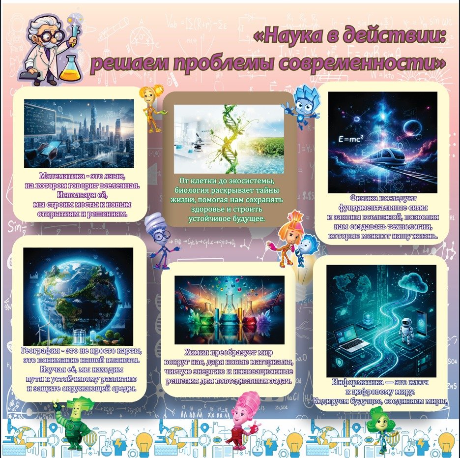 6 октября состоялось открытие тематической декады: «Наука в действии: решаем проблемы современности», в котором приняли участие учащиеся 5б класса нашей школы вместе с руководителем школьного методического объединения Вадимом Викторовичем Пономаренко. Учащиеся были ознакомлены с предстоящими мероприятиями для учащихся 1-11 классов: открытых уроков математики, химии, физики, биологии, географии, естествознания и информатики, различных конкурсов и выставок