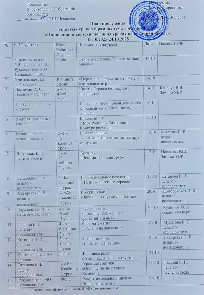 14 октября в нашей школе состоялось открытие тематической декады учителей начальных классов «Инновационные технологии на уроках в начальной школе».
