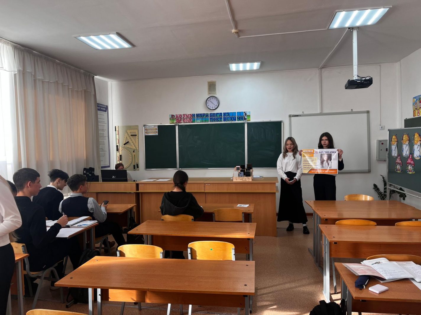 2025 жылғы 13–17 қазан аралығында мектебімізде Мектеп Президентін сайлау аясында үгіт-насихат жұмыстары жүргізілуде. Үміткерлер өздерінің сайлауалды бағдарламаларын ұсынып, сыныптастарымен кездесулер, пікірталастар өткізіп, үгіт материалдарын дайындап, мектеп өмірін жақсартуға бағытталған идеяларымен белсенді бөлісуде.