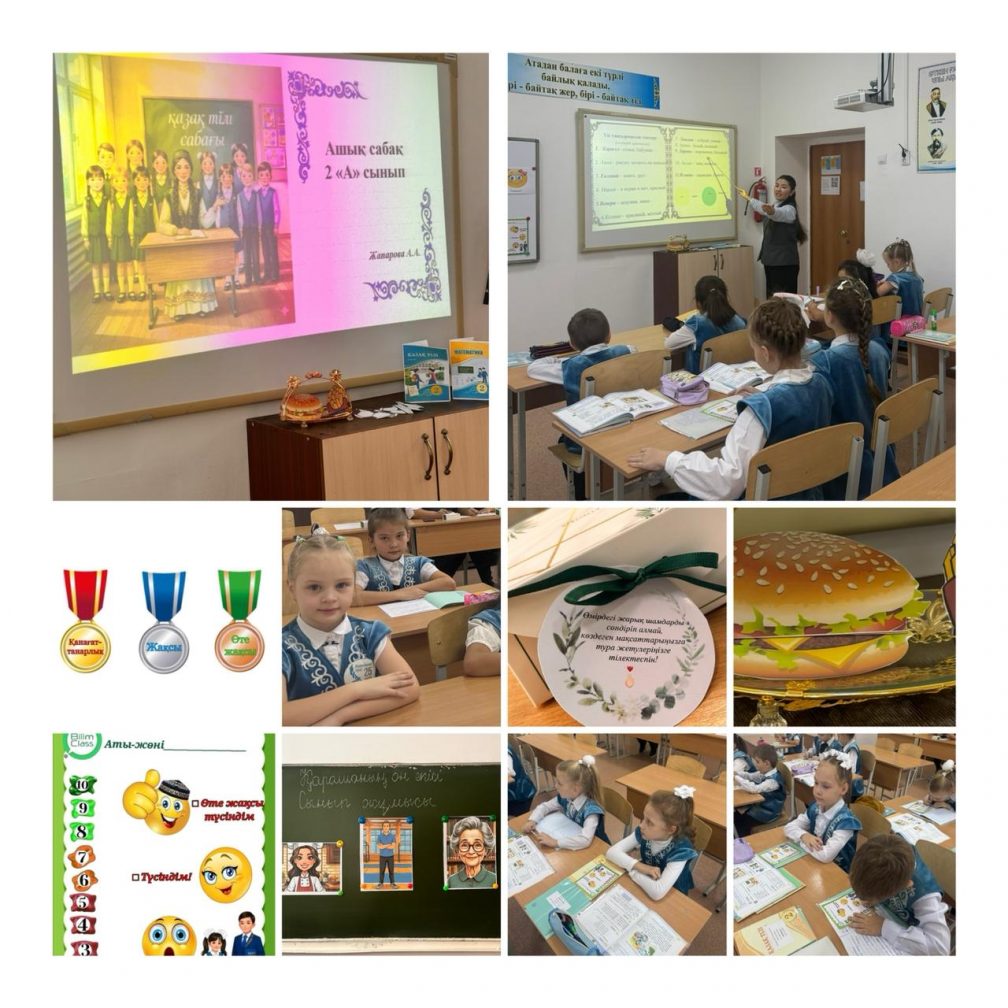 2 “А” сыныбында қазақ тілі мұғалімі Жапарова Әйгерім Абаевна «Менің мектебім» тақырыбында ашық сабақ өткізді. Сабақтың мақсаты – оқушылардың мектеп туралы сөздік қорын байыту, сөйлем құрау және байланыстырып сөйлеу дағдыларын дамыту.