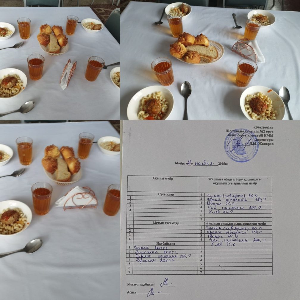 Шортанды кентіндегі №2 жалпы білім беретін мектеп білім алушылар мен ата-аналарды мектеп асханасының мәзірімен күн сайын таныстырып, оқу үдерісіне қатысушылар үшін ыстық тамақ пен қолайлылықты қамтамасыз етеді.
