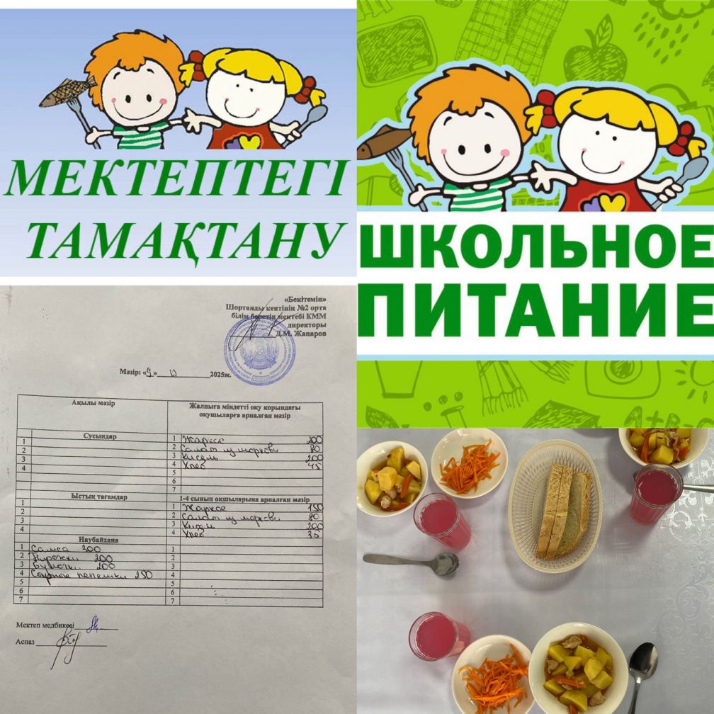 Шортанды кентіндегі КММ «№2 жалпы білім беретін мектеп» оқушылар мен ата-аналарды мектеп асханасының мәзірімен күнделікті таныстырады, бұл білім беру процесіне қатысушылар үшін ыстық тамақ пен ыңғайлылықты қамтамасыз етеді.