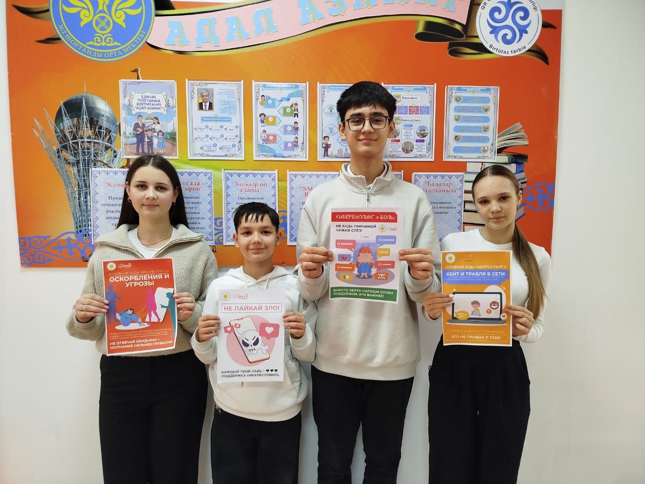 Жоғары сынып оқушыларының кеңесі мектептің вожатасымен бірлесіп «Біз цифрлық зорлық-зомбылыққа қарсымыз!» онлайн-челленджін өткізді. Қатысушылар оқушыларды интернет кеңістігінде жауапкершілікпен әрекет етуге, агрессия таратпауға және бір-бірінің цифрлық шекараларын құрметтеуге шақырып, қауіпсіз онлайн-қатынастың маңыздылығын атап өтті.