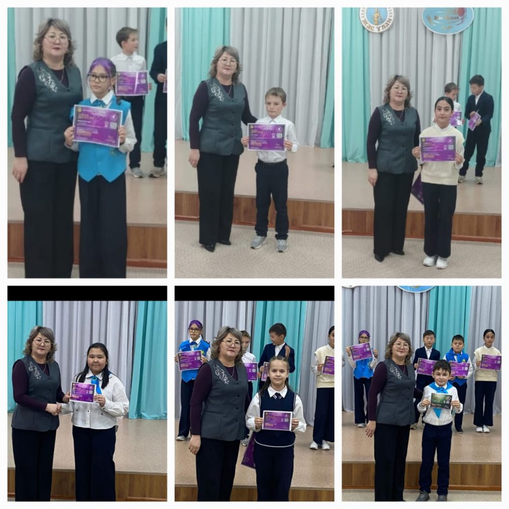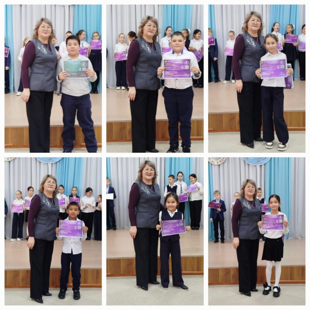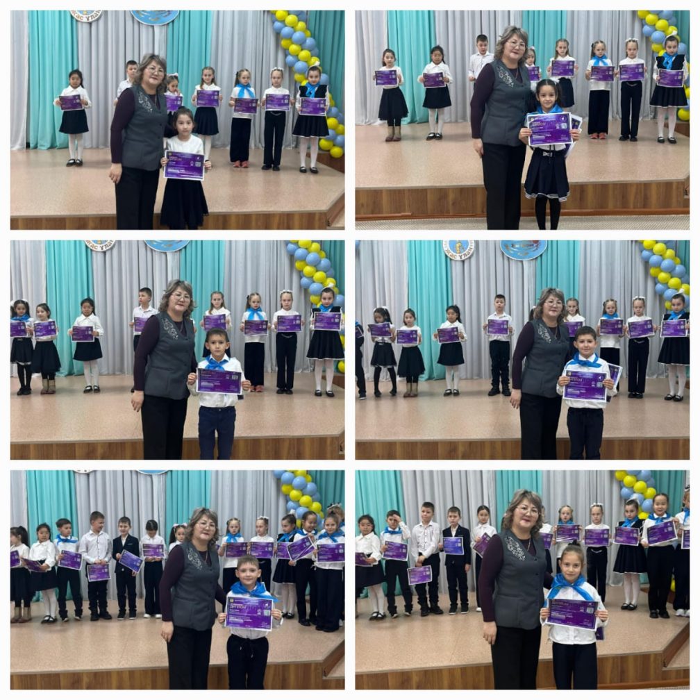 Талантты және дарынды балаларды қолдау мақсатында І жартыжылдықтың қорытындысы бойынша директордың оқу-тәрбие ісі жөніндегі орынбасары Искакова Р. Ш. бастауыш сынып оқушыларына арналған марапаттау рәсімін өткізді.