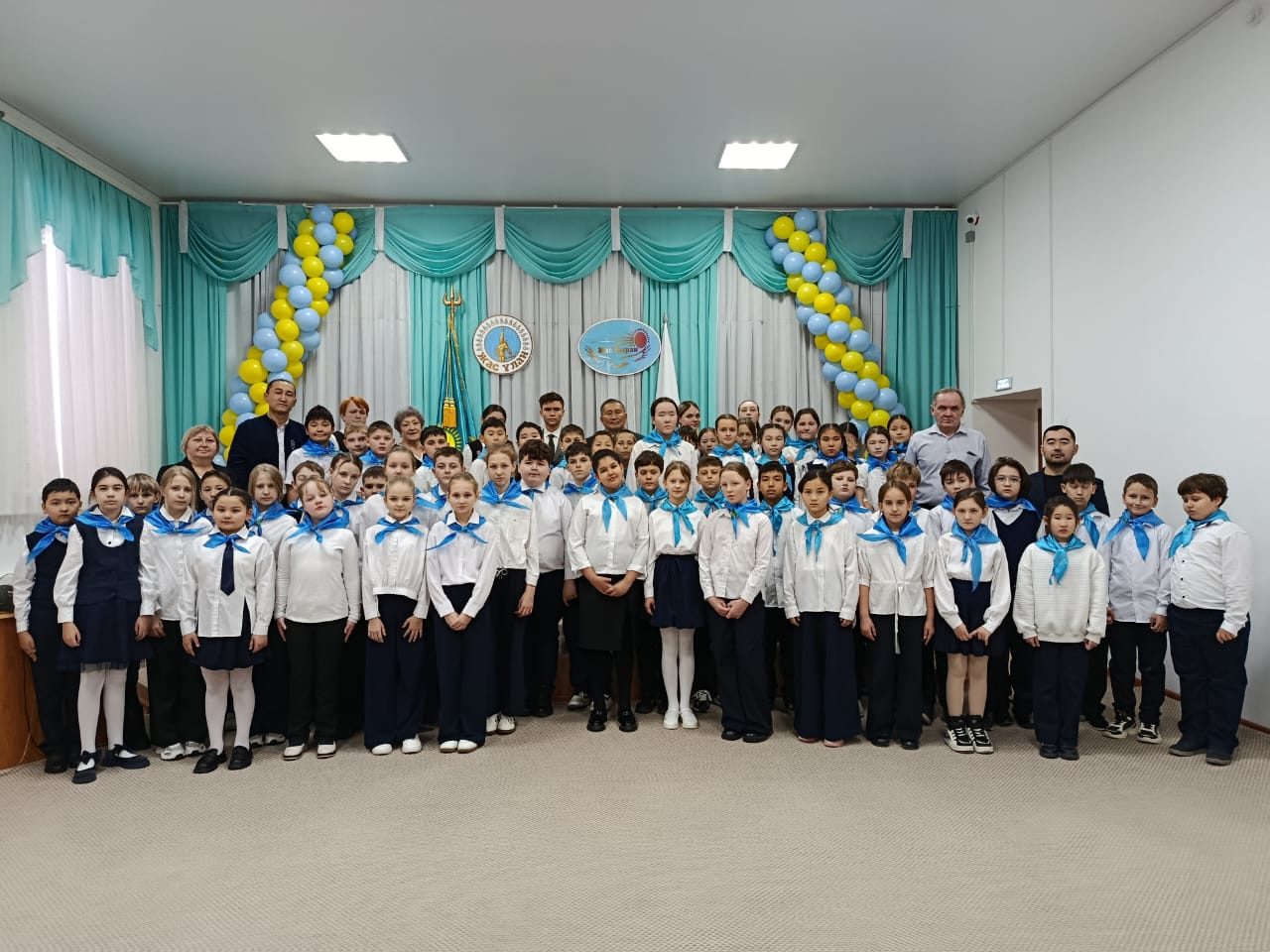 Галстук тағу рәсіміне аудандық ардагерлер кеңесінің төрағасы Абдрахманов Жұмабек Сейпелевич, педагогикалық еңбек ардагері Панкова Ольга Николаевна, мектеп директоры Жапаров Даурен Маданиятович, сынып жетекшілері және мектеп Президенті қатысты. Қонақтар оқушыларды маңызды қадамдарымен құттықтап, табыс тілеп, «Жас Ұлан» ұйымының мақсаттары мен құндылықтары туралы түсіндіріп өтті.
