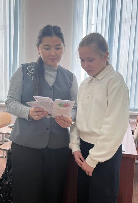 «Адал Азамат» бірыңғай тәрбие бағдарламасын іске асыру аясында мектепте жасөспірімдер арасында нашақорлықтың алдын алуға бағытталған плакаттар мен буклеттер байқауы өткізілді. Бұл іс-шараға қатысу оқушылардың салауатты өмір салты мен жеке жауапкершілік мәселелеріне саналы көзқарасын қалыптастыруға ықпал етті. 5 «В» сыныбының оқушылары тақырыптық материалдар дайындап қана қоймай, оларды тарату жұмысына да белсенді қатысты. Олар мұғалімдер мен мектеп қызметкерлеріне буклеттер таратып, ақпараттық түсіндіру жұмыстарын жүргізді. Өткізілген іс-шара профилактикалық және ағартушылық сипатта болып, оқушылардың әлеуметтік белсенділігін дамытуға және «Адал Азамат» бағдарламасының құндылықтарын нығайтуға ықпал етті.