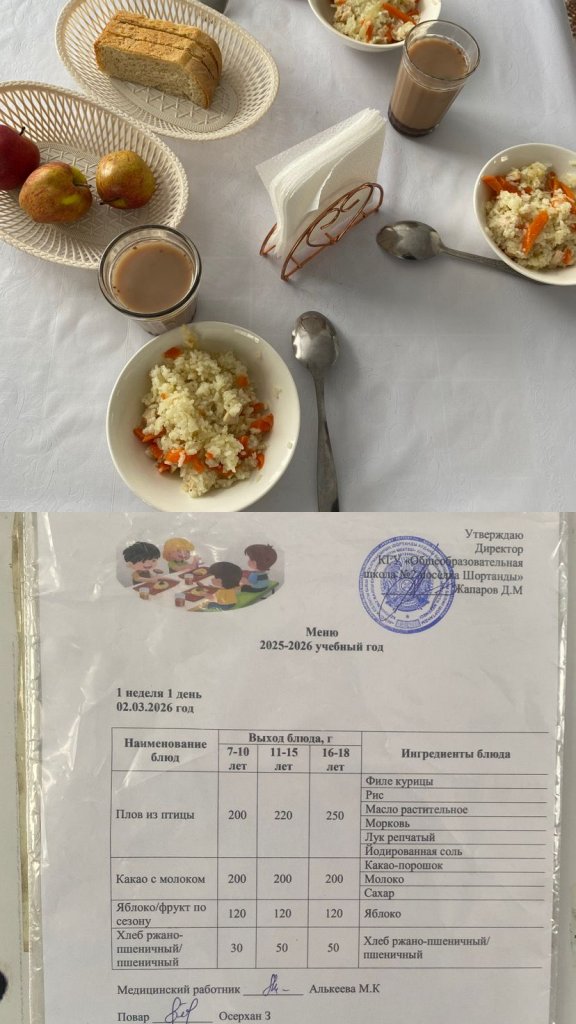 Шортанды кентіндегі №2 жалпы білім беретін мектеп білім алушылар мен ата-аналарды мектеп асханасының мәзірімен күн сайын таныстырып, оқу үдерісіне қатысушылар үшін ыстық тамақ пен қолайлылықты қамтамасыз етеді.