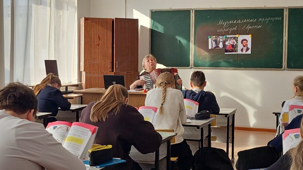 Особое внимание было уделено народным инструментам, таким как волынка, мандолина, кастаньеты и аккордеон, а также традиционным танцевальным жанрам и песенным формам. Учащиеся активно участвовали в обсуждении, выполняли творческие задания, анализировали прослушанные произведения и пробовали передать характер национальной музыки через ритмические и вокальные упражнения.